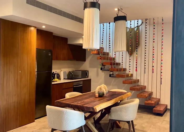 Plunge Pool Duplex Ph With Beach Club Shuttle And Gym features a fully equipped kitchen. Guests can also take a bus at Vanes foraneas bus station, set merely 1 km away, to explore the rest of Tulum. You can take advantage of a fitness suite, so it’s easy to keep up with your exercise routine. Enjoy your stay at a terrace.